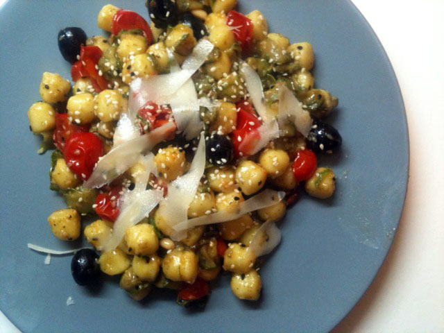 Nella Wok invece rosolate aglio pinoli e olive nere in un po' d'olio. Non appena questi saranno dorati aggiungete un peperoncino secco, prezzemolo e i calamaretti sfumandoli due minuti con il vino bianco.
